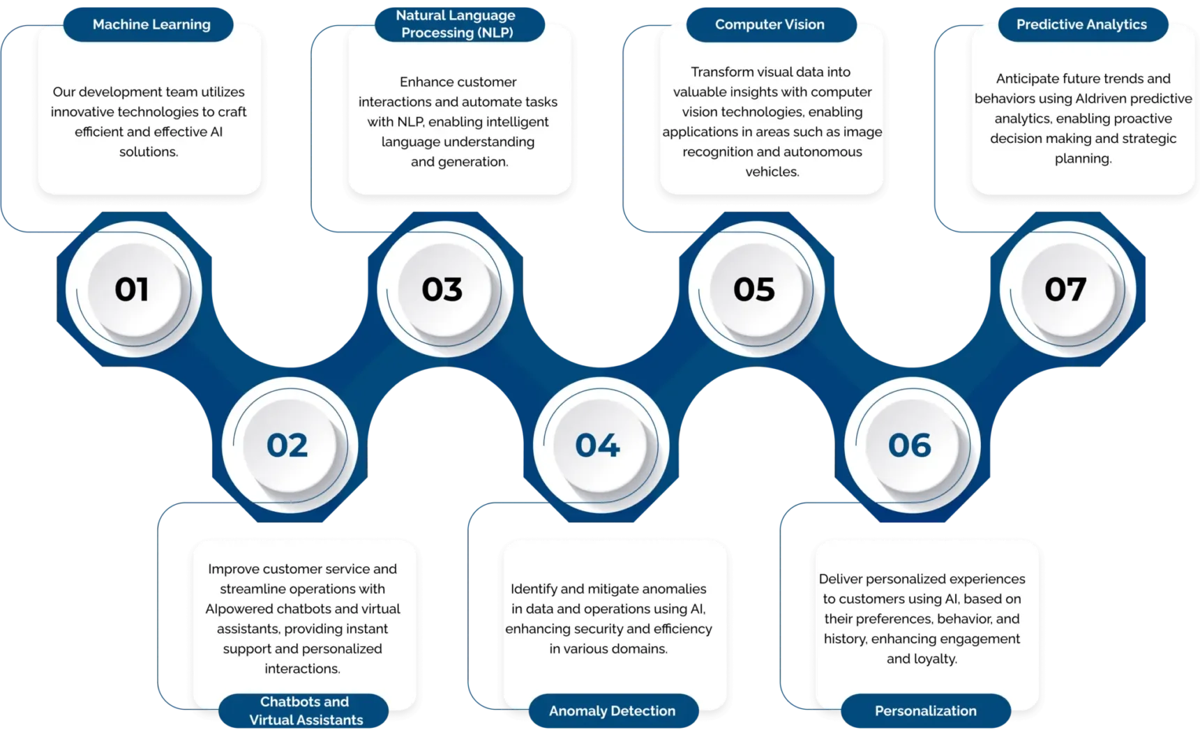 Harness advanced AI technologies like machine learning and NLP for innovative solutions.